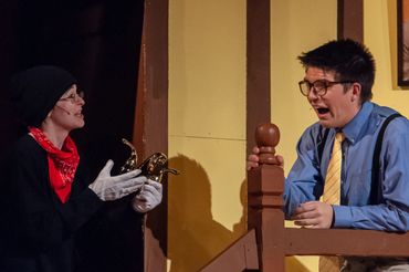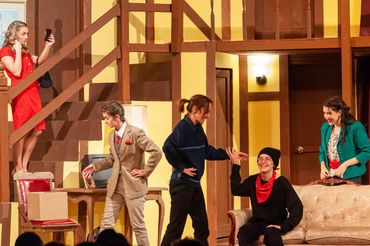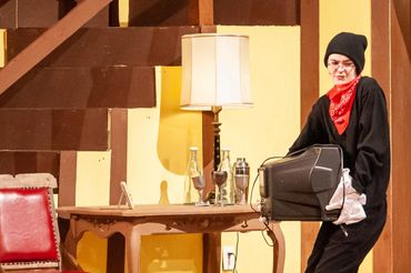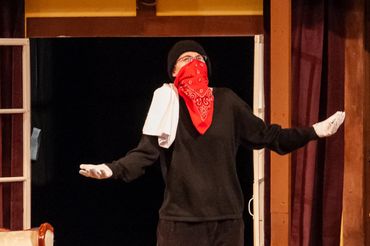 Endicott's fall 2021 Mainstage Production was Noises Off, a three act British farce by Michael Frayn. It opens on the final dress rehearsal of a play called Nothing On, a show that features a myriad of doors, sardines, and issues. The second act takes place backstage during a performance, during which the actor characters are trying to fix all sorts of problems between them. The third act is meant to be one of the last performances, during which the whole show falls apart. I played Selsdon Mowbray, a forgetful old drunkard actor portraying the role of the burglar.